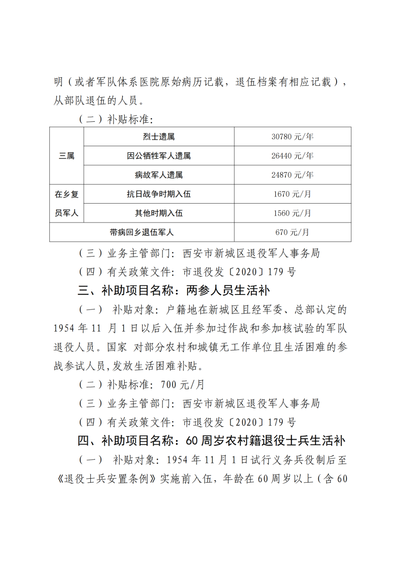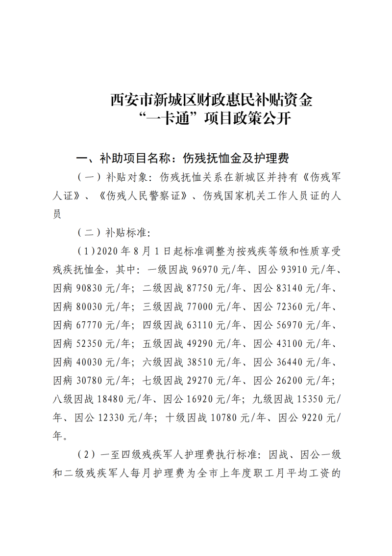 西安市新城区退役军人事务局财政惠民补贴资金“一卡通”项目政策公开