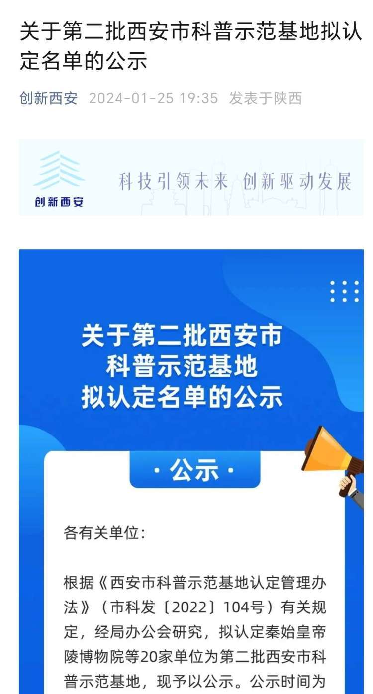 入选单位分别是:西安市中心医院眼科科普教育基地、陕西省生物农业科普示范基地、国王的朋友科技探索博物馆。