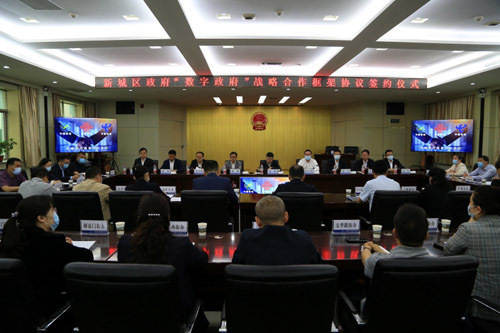 2023年5月26日上午,新城区与中国移动西安分公司、中国联通西安分公司、中国电信西安分公司举行“数字政府”战略合作框架协议签约仪式。此次签约是新城区推动数字政府建设重要部署的实际行动,对以信息化技术支撑和引领经济发展、城市治理、民生服务具有重大意义。