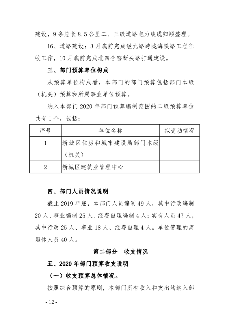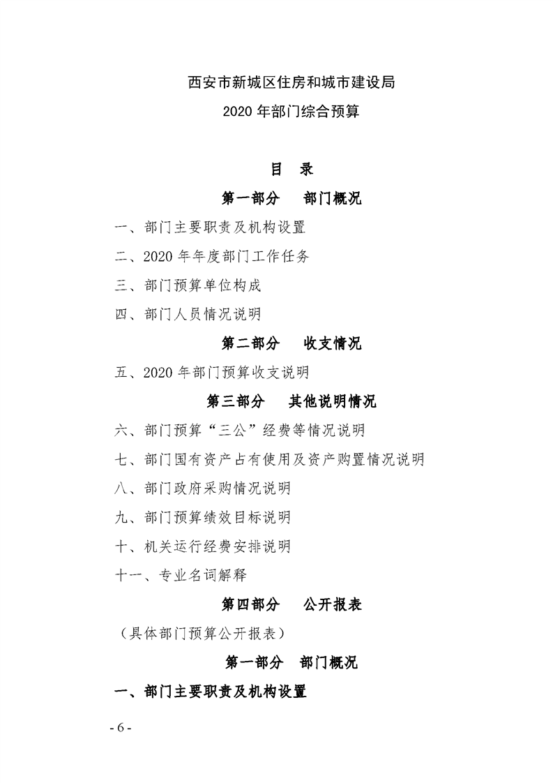 西安市新城区住房和城市建设局2020年部门综合预算