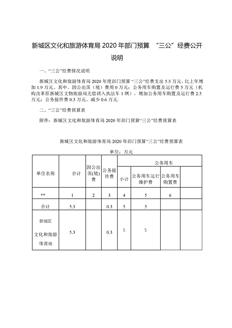 西安新城区文化和旅游局2020年部门预算“三公”经费公开说明