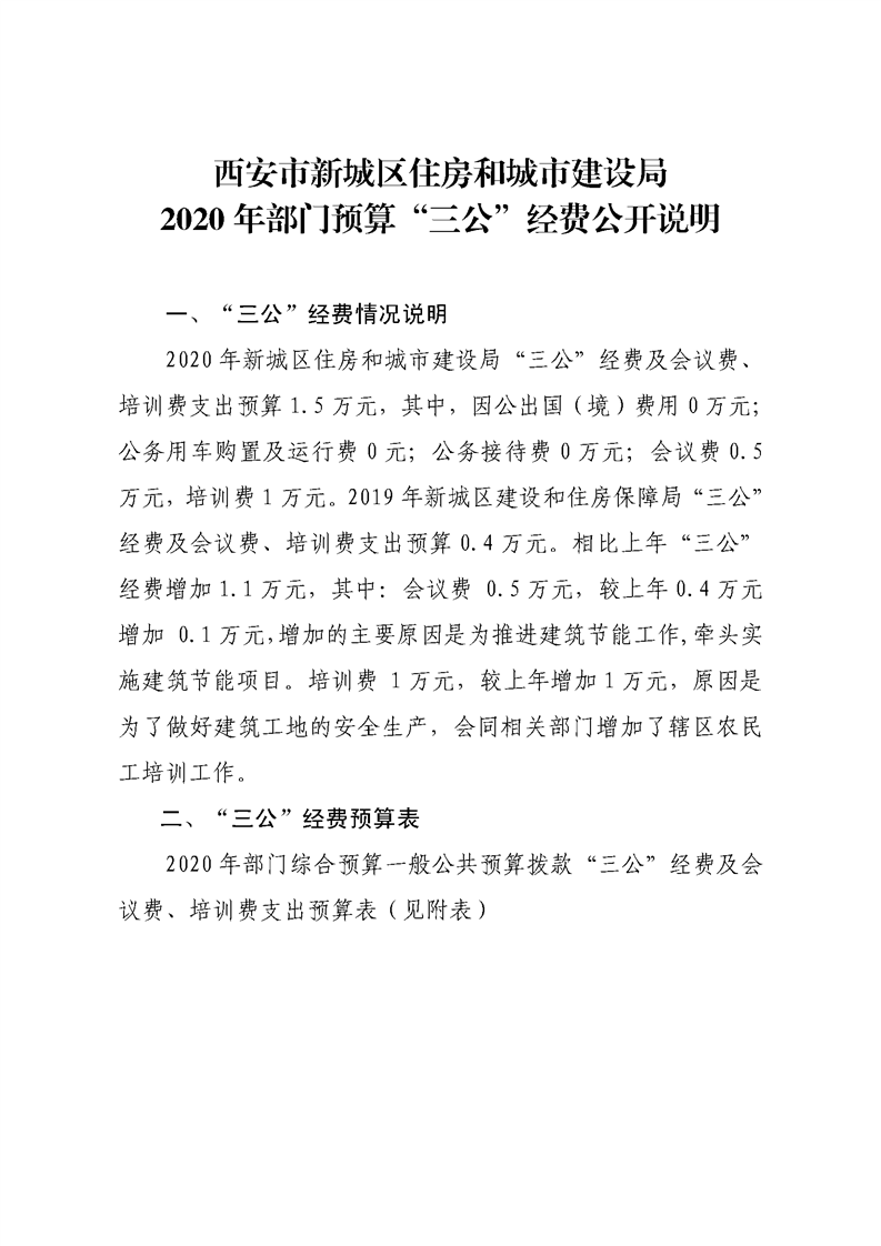 2020年新城区住房和城市建设局 “三公”经费及会议费、培训费支出预算表.xls