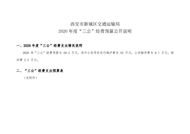 西安市新城区交通运输局2020 年部门预算“三公”经费公开说明