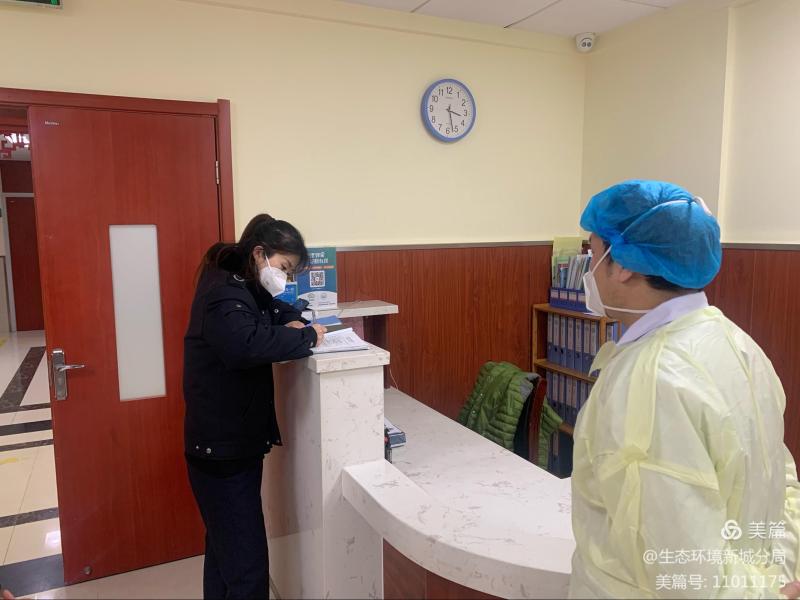 为巩固辖区医疗废物清运处置工作成效,为打赢疫情防控阻击战守好最后一道防线,防止病毒二次传播和造成环境二次污染,2022年1月19日下午,生态环境局新城分局组织人员继续开展辖区核酸检测医疗废物集中暂存点、医疗机构、隔离酒店医疗废物及废水督导检查。