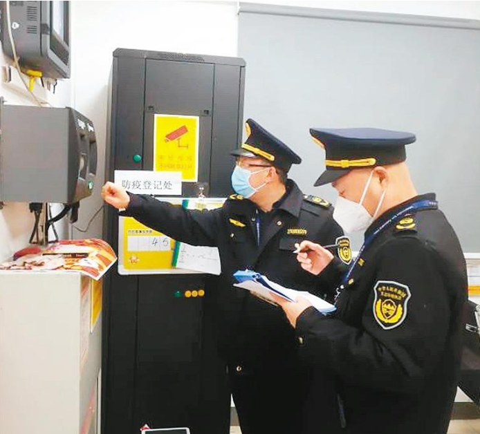 西安市生态环境局新城分局执法人员对辖区企业进行执法检查。 (记者 高乐 摄)