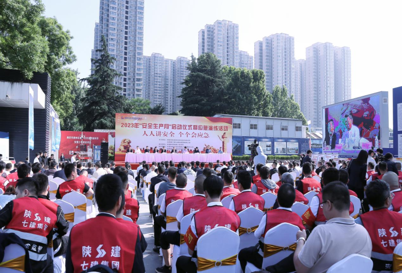 本次活动由新城区住建局主办,陕建七建集团承办。今年6月份是我国第22个安全生产月,本次安全生产月活动主题是“人人讲安全,个个会应急”。辖区各建设项目施工现场负责人及陕七建集团管理人员共计一百余人参加。启动仪式上区住建局就2023年“安全生产月”暨应急演练活动安排及当前安全生产工作形式进行分析,要求各项目负责人通过本次观摩活动为我区“十四五”期间建筑业更高质量、更高安全的发展奠定基础,提升我区建设项目的安全水平和管控应急能力。