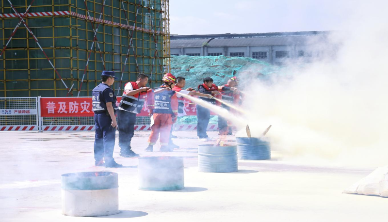 “安全生产月”启动仪式后,企业按照应急救援预案现场开展了施工现场消防灭火、高处坠落、人员救治等应急救援工作。