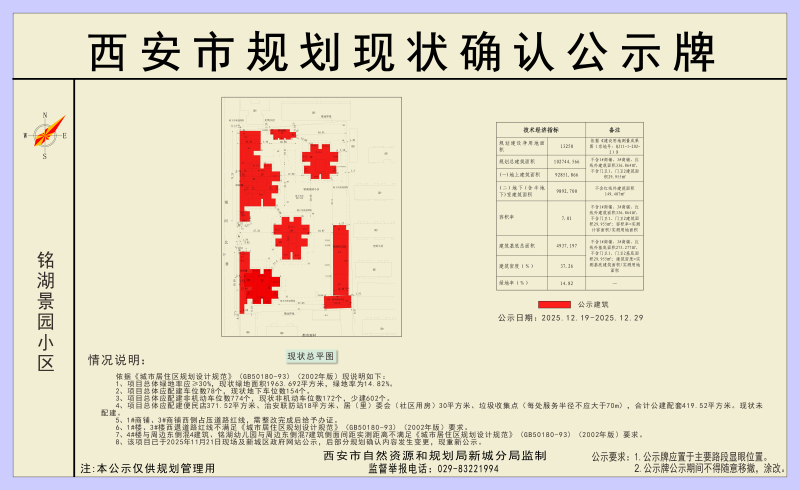 关于铭湖景园小区现状确认的公示