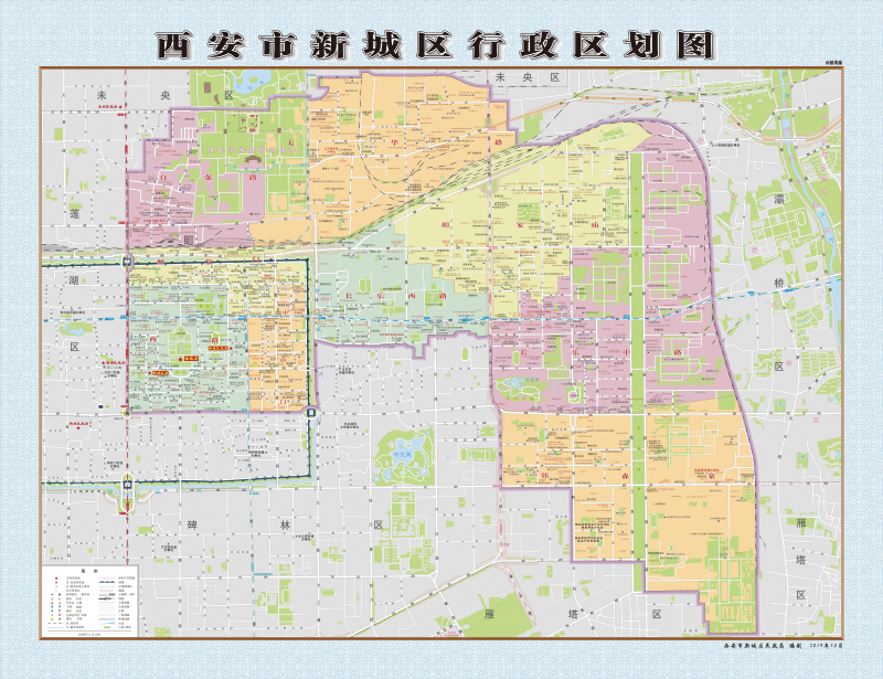 目前,新城区辖9个街道:西一路街道、长乐中路街道、中山门街道、韩森寨街道、解放门街道、自强路街道、太华路街道、长乐西路街道、胡家庙街道。