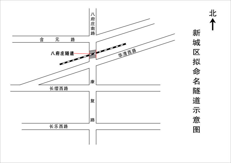 命名依据:该隧道地处新城区八府庄区片,下穿陇海铁路线,连接康复路与八府庄南路。八府庄得名于明朝秦王朱樉的第八子庄园,为便于群众使用记忆,传承片区历史沿革,故命名为八府庄隧道。