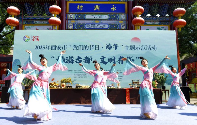 5月29日上午,由西安市新时代文明实践指导中心、新城区委宣传部(文明办)、新城区文旅体育局主办,中山门街道等承办的2025年西安市“我们的节日·端午”“畅游古都 文明有你”主题示范活动在永兴坊举办,让市民游客感受传统佳节氛围,共同领略非遗与民俗的独特魅力。