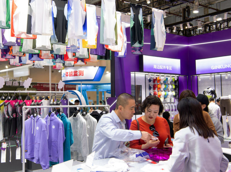 1月4日,观众在第五届中国马拉松博览会现场挑选体育运动服装。当日,为期三天的第五届中国马拉松博览会暨2024福建省路跑产业博览会在厦门国际会展中心开幕。新华社记者 魏培全 摄