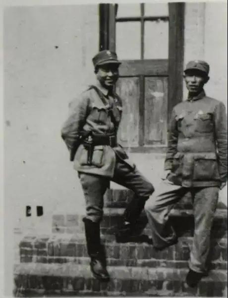 1938年莫钧涛(右)与周恩来的警卫副官龙飞虎在八路军驻陕办事处