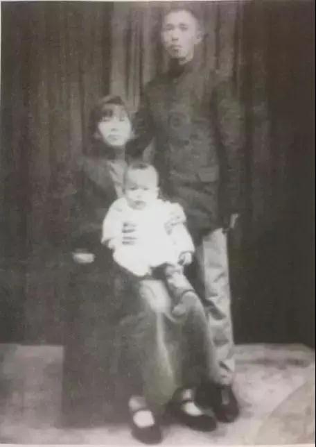 1938年莫钧涛(右)与妻子陶才桢(左)、长子莫泰山在八路军驻陕办事处
