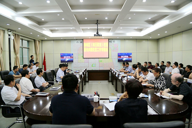 7月10日晚,新城区召开《每日聚焦》栏目反映问题处置工作专题会,区委书记、区长仵江主持会议,四大班子全体区级领导,各街道党政主要负责同志参加,市委督查室督察专员李梁超同志到会指导。