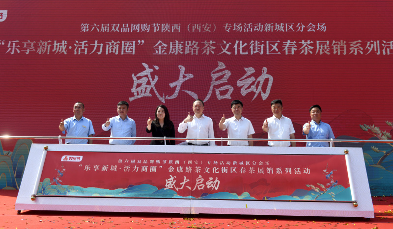 4月28日,第六届全国“双品网购节”西安市新城区分会场暨“乐享新城·活力商圈”金康路茶文化街区春茶展销系列活动启动仪式在长乐中路举行。
