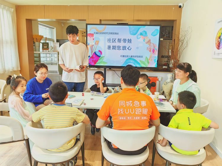 暑期,为解决新业态新就业群体后顾之忧,让该群体子女度过安全有意义的暑假生活,红星社区党委依托新时代文明实践站和“心诚人家 暖心驿站”服务阵地,为新业态新就业群体子女提供公益暑托服务,积极链接社会资源,招募支部党员同志、爱心志愿者、实践大学生为孩子们开展课业辅导、趣味手工、经典阅读、党史学习等丰富多彩的活动。用实际行动彰显了社区为民解难题、办实事的服务理念,同时丰富了儿童友好型街区的内涵。卫民社区党委组织社区志愿者开设创意美术课堂,带领孩子们学习绘画,激发创意,让新业态新就业群体的子女们度过了一个兴趣满满的暑假。