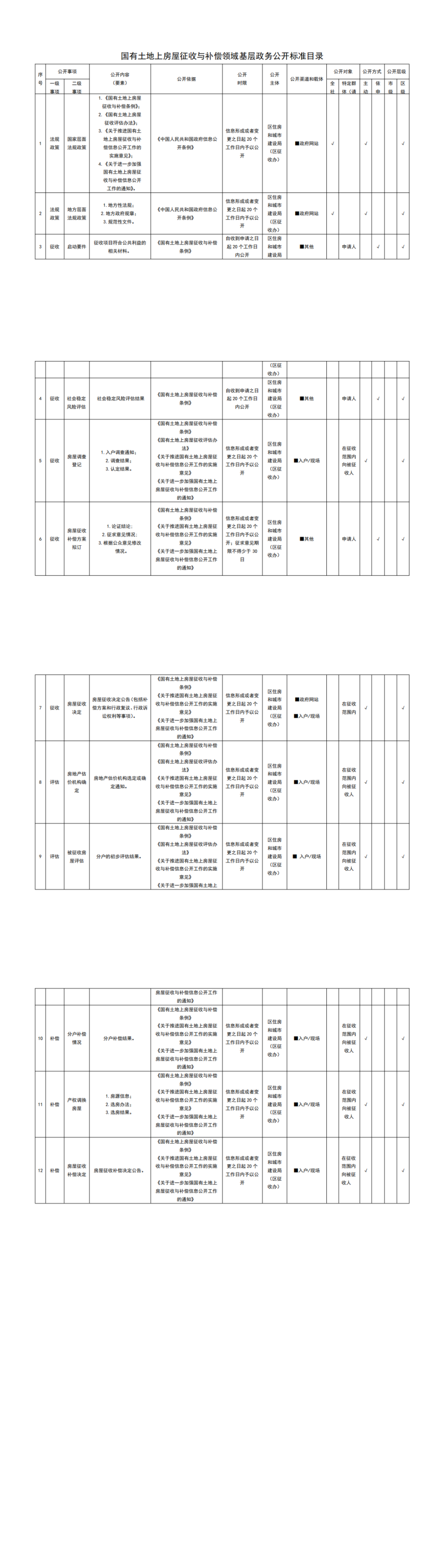 国有土地上房屋征收与补偿领域基层政务公开标准目录