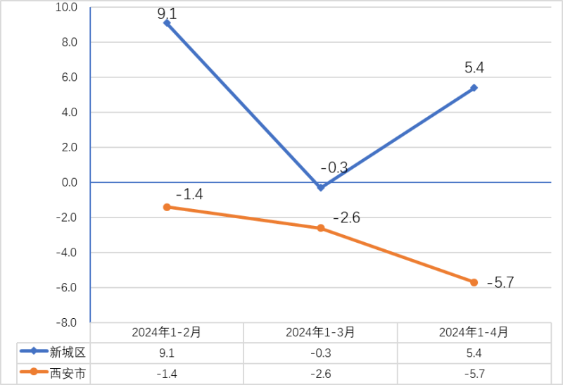 1-4月,全区规模以上工业增加值增速-2.4%,规模以上企业产值增速5.6%,分别较1-3月回落2.5和3.4个百分点。