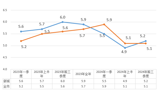 2023年至今城镇居民人均可支配收入各季度增长情况(单位:%)