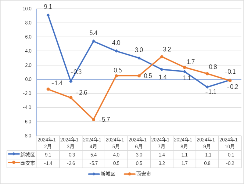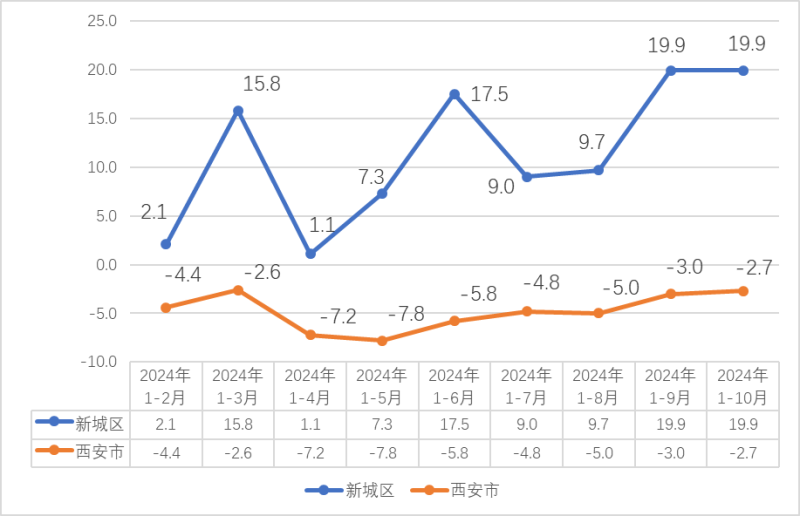 1-10月全区固定资产投资完成52.67亿元,增长19.9%,增速与上月持平。其中,城镇投资下降14.1%,较1-9月降幅收窄3.4个百分点,房地产开发投资增长101.9%,较1-9月回落6.6个百分点。