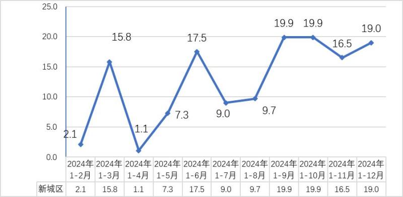 2024年新城区实现地区生产总值801.12亿元,同比增长3%,增速较前三季度加快1.5个百分点。2024年我区经济总量首次突破800亿元,较2023年经济总量增加79.02亿元。