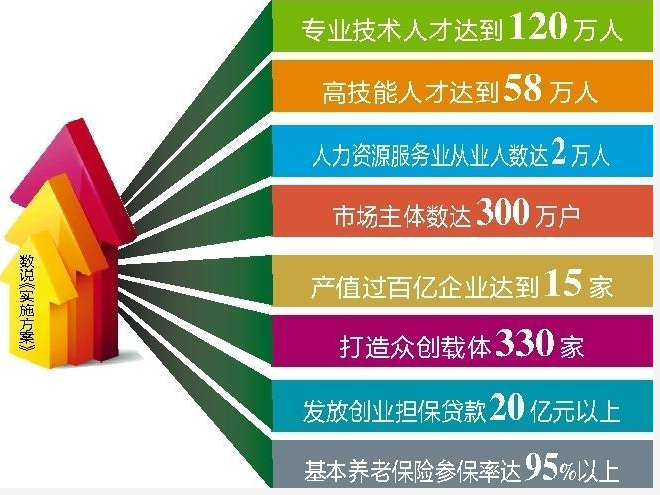 创业带动就业效应持续释放。创业成本大幅降低,创业载体的空间布局更加合理,创业孵化能力持续提升,创新创业生态链进一步完善。建设100个新型研发机构,科技型企业上市数量达到100家以上。基础服务能力显著增强。人力资源服务机构数量稳定在2000家以上,人力资源服务业从业人数达到两万人,人力资源服务业年营业收入达到500亿元。