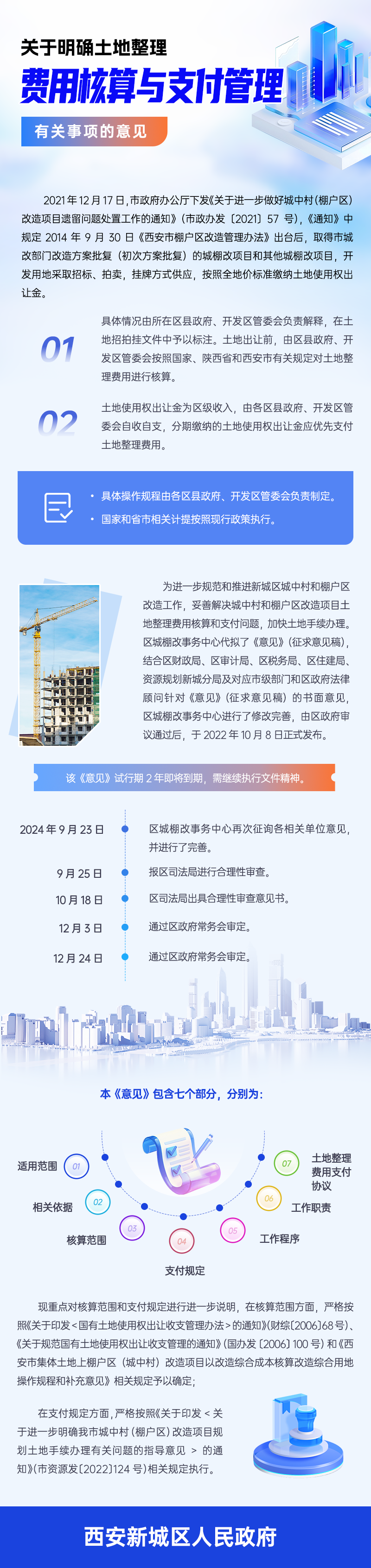 一图读懂西安市新城区人民政府关于土地整理费用核算与支付管理相关意见。