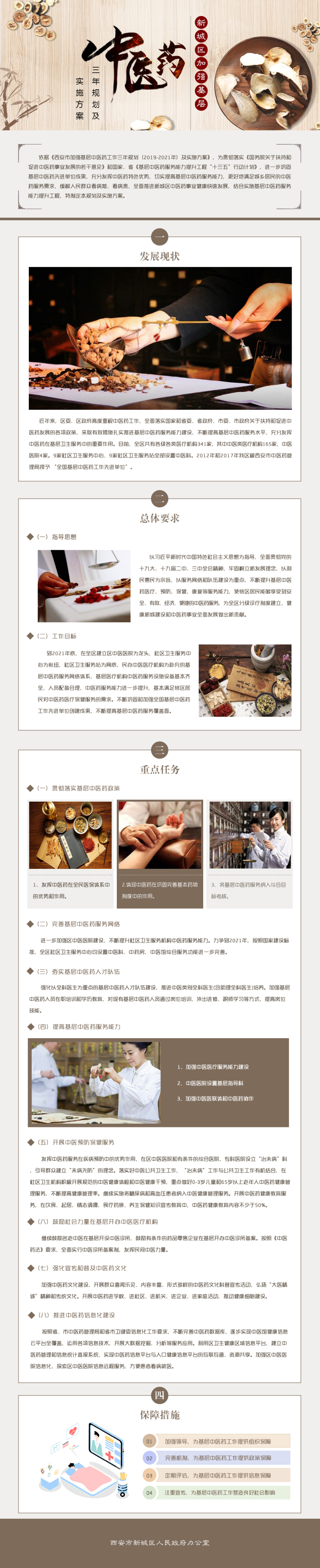 相关文件:西安市新城区人民政府办公室关于印发新城区加强基层中医药工作三年规划(2019-2021年)及实施方案的通知