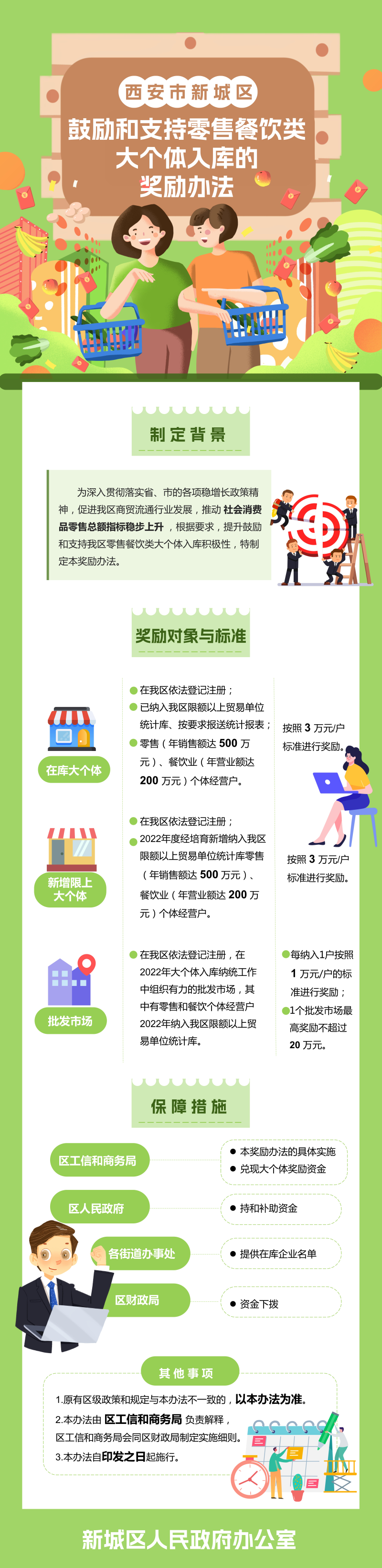 一图读懂 | 西安市新城区鼓励和支持零售餐饮类大个体入库的奖励办法