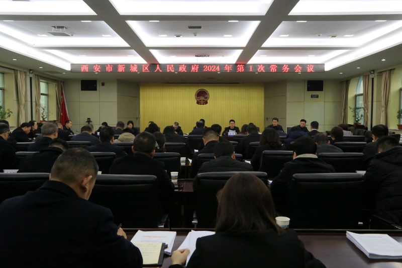 2024年1月5日上午,邓晓东区长主持召开2024年区政府第1次常务会议,审议并原则通过《西安市新城区第十九届人大三次会议〈政府工作报告(讨论稿)〉》、《西安市新城区2023年国民经济和社会发展计划执行情况与2024年国民经济和社会发展计划草案的报告(讨论稿)》。