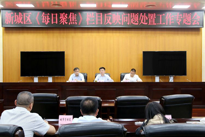 5月24日晚,新城区召开《每日聚焦》栏目反映问题处置工作专题会,区委书记、区长仵江主持会议,区委常委、统战部部长李智平,副区长苏继文,各街道党政主要领导,区城管局班子成员及全区102名“所长”参加,市委督查室派员现场指导。