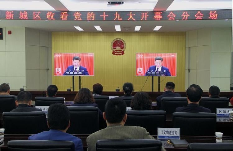 10月18日上午9时整,中国共产党第十九次全国代表大会隆重召开。新城区四大班子、区级各部门、各街道、各社区、学校、医院、企业以及驻村扶贫工作队等各级党组织,组织党员和群众集中收看大会开幕会,认真学习习近平总书记重要报告。
