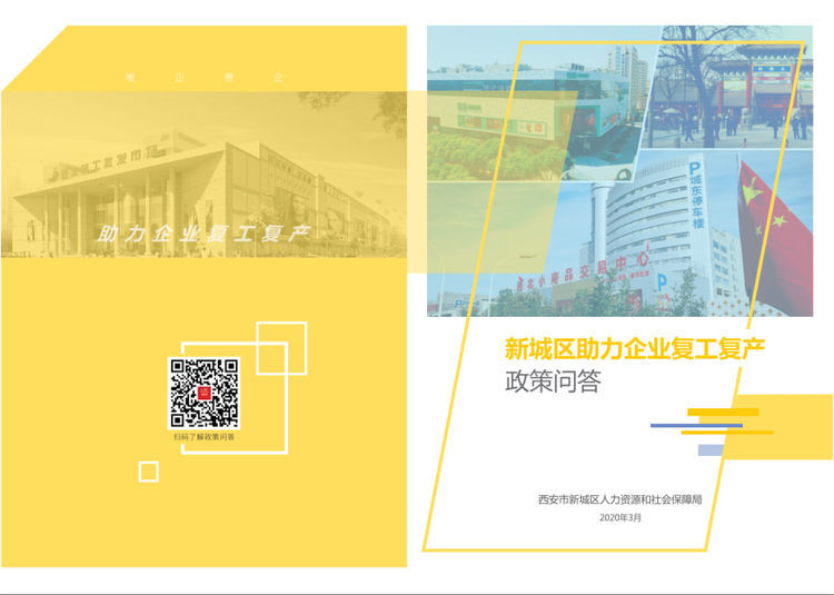 近期,按照区委区政府要求,在区发改、财政、科技、税务、金融办等多部门的大力支持和配合下,新城区人社局以9篇23条112问的形式编写了《新城区助力企业复工复产政策问答》,收录了就业创业补助、企业社保补贴、职业技能培训等相关政策。同时,为了增强宣传效果,新城区人社局推出政策问答二维码,提供在线查询,可随时随地了解政策、学习政策、掌握政策、用足用好政策。
