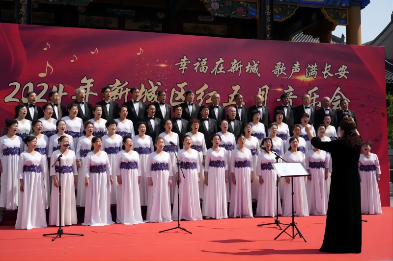 为大力弘扬社会主义核心价值观,传承红色基因,赓续精神血脉,汲取奋进力量,进一步丰富和活跃群众精神文化生活,提升文化获得感和幸福感。5月15日上午,“幸福在新城 歌声满长安”红五月音乐会西一路街道专场在西安易俗社文化街区圆满落幕。来自辖区驻地单位和各社区的13支文艺团队用飞扬的歌声,优美的舞姿,熟悉的旋律,演绎时代华章,展现广大干部群众昂扬奋进新征程的精神风貌。600余名干部群众齐聚现场,重温红色经典,回忆峥嵘岁月。