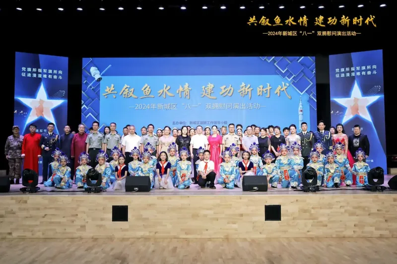 为庆祝中国人民解放军建军97周年,7月24日下午,由新城区双拥工作领导小组主办,区退役军人事务局、区文化和旅游体育局、区文化馆、区教育局、区妇联及区总工会承办的“共叙鱼水情,建功新时代”——2024年“八一”双拥慰问演出举行。