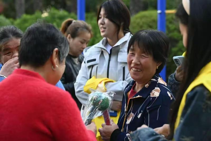 短剧结束后,志愿者们与现场的老年人开展了互动问答,在一问一答中提醒老年人若遇到可疑情况时应采取的措施。参与互动的老年人还收到了志愿者们准备的防骗手册、印有反诈宣传标语的环保袋等礼品。