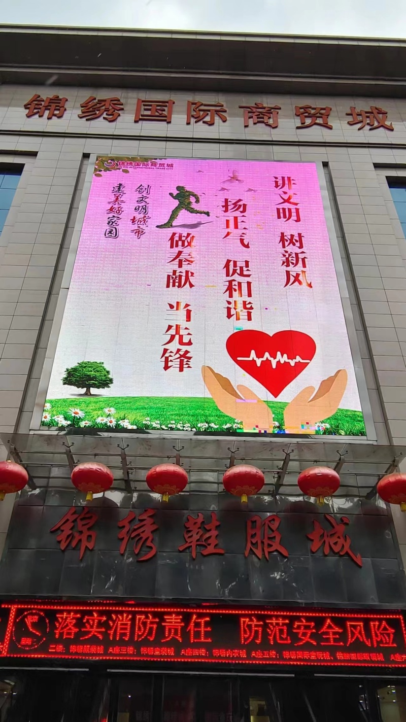 为进一步提高社会公众对创文工作的知晓率、支持率和参与率,助推诚信建设,康复路市场监管所闻令而动,积极组织辖区商场等单位利用LED屏幕滚动播放创文公益广告,营造良好宣传氛围。