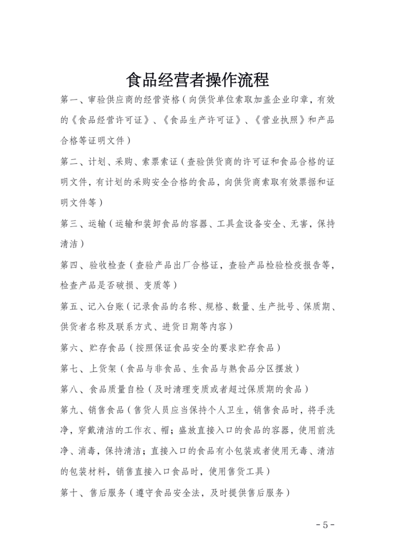 食品安全管理制度清单