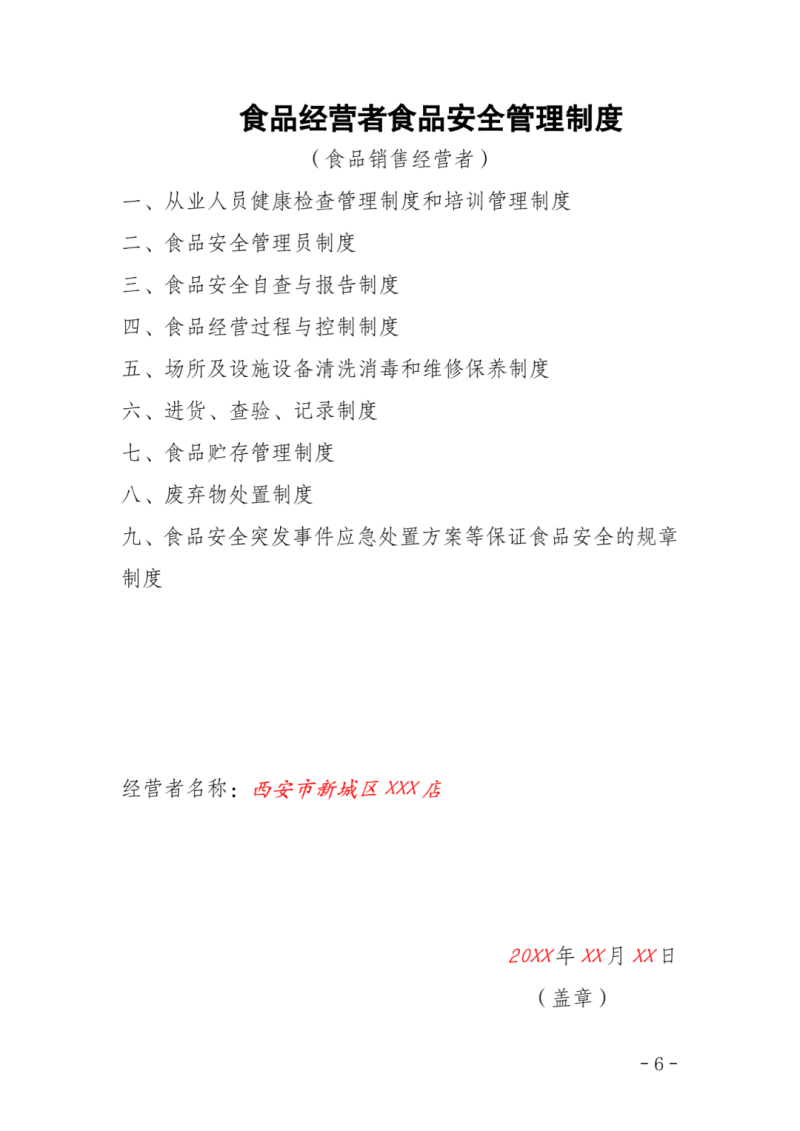 3.食品安全管理制度清单原件1份(详见示例2)。