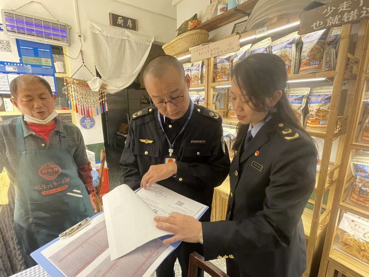 随后,检查组对辖区旅游景点及周边餐饮单位的食品原料采购、加工制作、人员健康管理、场所卫生等情况进行检查,督促餐饮单位切实履行好食品安全主体责任,严禁采购、使用、销售来源不明的食品原材料,严格执行餐饮卫生操作规范,严防食品安全问题发生。