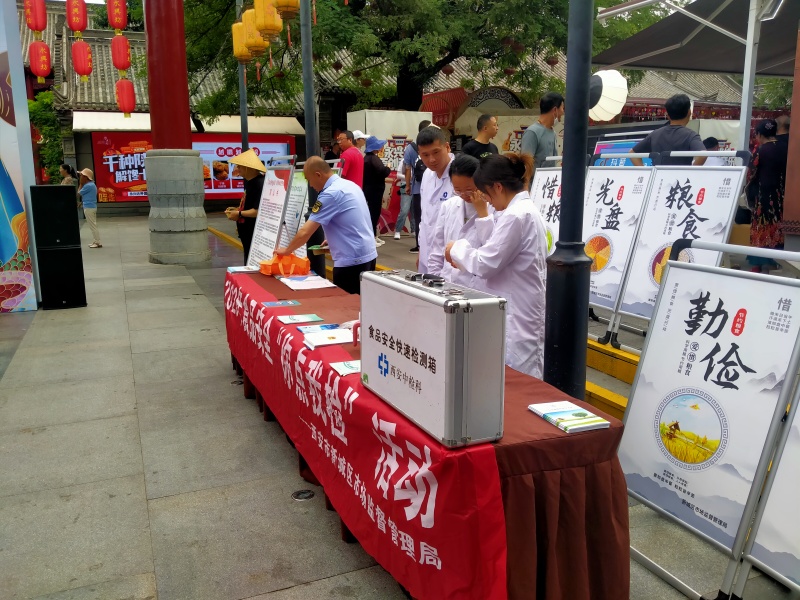 “弘扬端午文化,传承中华文明”,6月20日,新城区2023年第四期食品安全“你点我检”活动在永兴坊美食文化街区举办。此次活动的主题是“粽香情浓绘端午,文明家风共传承”,在全社会倡导文化自信的良好风尚。活动通过展板宣传、展台咨询、实地参观、发放资料、快检演示、问卷调查、现场抽检等多种方式开展,旨在让群众“零距离”感受和了解食品安全检验检测工作,引导群众形成科学合理的食品消费理念,还开展了“你我同查”、“反餐饮浪费”宣传活动。共设立展板10块,展台2个,出动执法车辆2辆,发放各类宣传资料90余份,现场对果蔬农药残留、餐具表面洁净度进行快速检测,结果均合格;对餐饮食品、酒类、节令食品抽样10余批次,接受群众咨询60余人次。